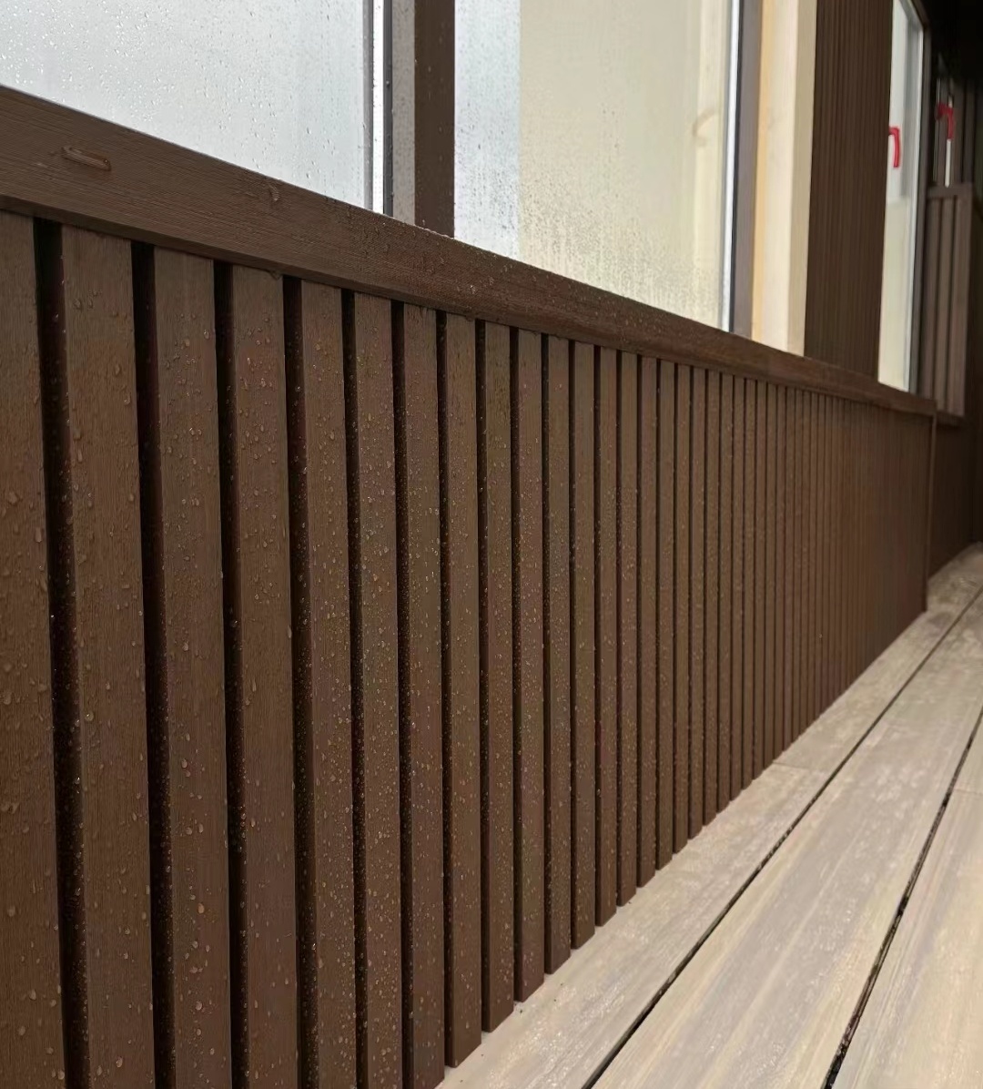 2. Dureté et durabilité élevées : par rapport au revêtement WPC traditionnel, le processus de coextrusion complète rend les panneaux plus solides et plus résistants aux chocs.
